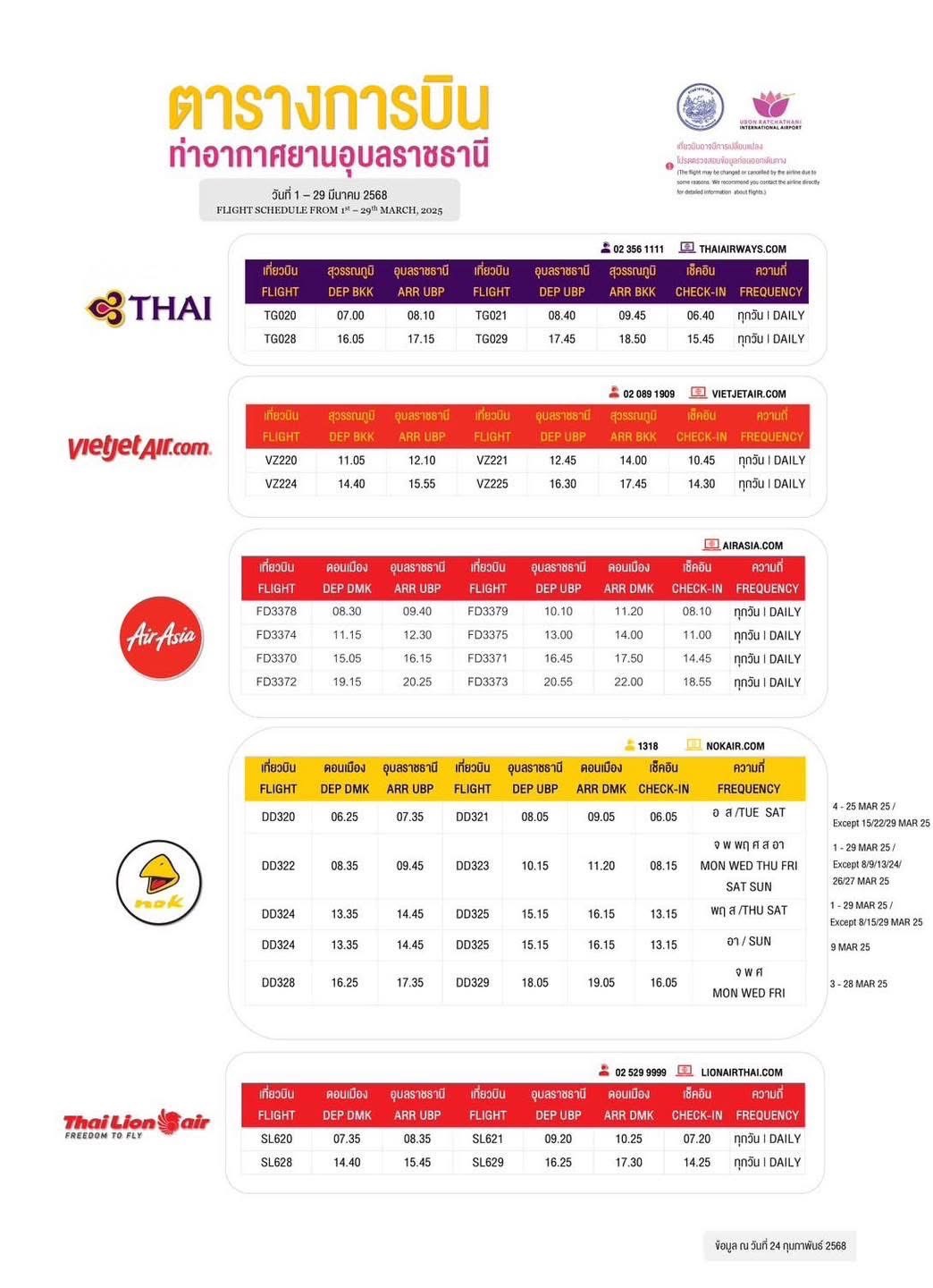 ตารางการบินจังหวัดอุบลราชธานีไปทัวร์ลาวใต้