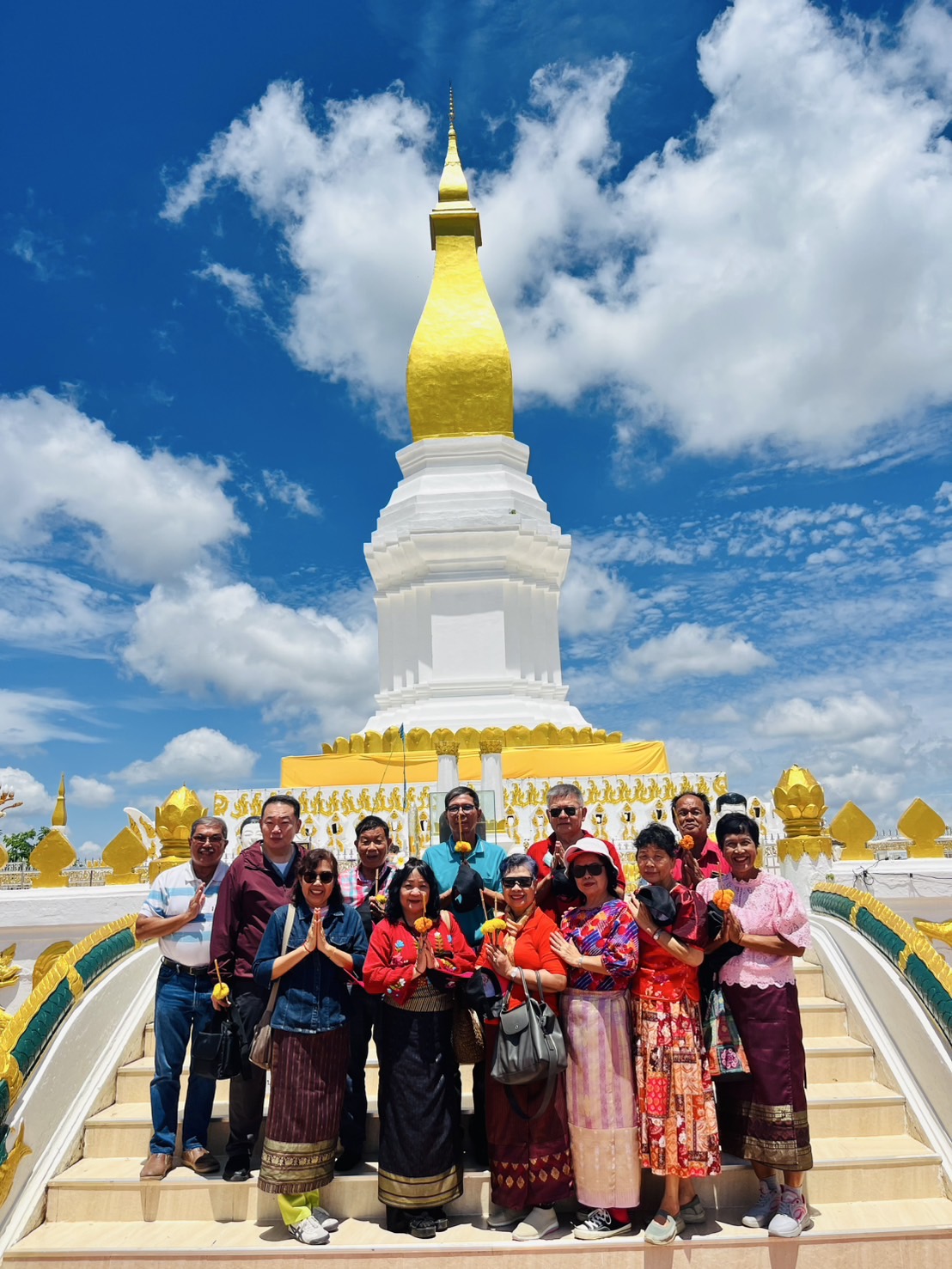 จากนั้น เข้าชม พระธาตุโพน เป็นพระธาตุศักดิ์สิทธิ์สำคัญคู่บ้านคู่เมือง ที่ผู้คนในฝั่งลาวให้ความเคารพนับถือเป็นอย่างมาก ในวันพระหรือวันสำคัญทางพุทธศาสนา จะมีผู้คนแห่แหนมาทำบุญกันอย่างเนืองแน่น นิยมมาขอพร สืบอายุต่อชะตา บนบานสารกล่าว ซึ่งก็เล่ากันว่าประสบผลสำเร็จตามที่ขอกันเป็นส่วนใหญ่ จึงมาแก้บนกันด้วยขันหมากเบ็ง ดอกไม้ ผลไม้ อาหารและเครื่องบูชาหลากชนิด ถวายอยู่เต็มหน้าพระธาตุในทุกๆวัน จากนั้นนำท่านเข้าชม พระธาตุอิงฮัง พระธาตุที่ได้ชื่อว่าเป็นพระธาตุคู่แฝดของพระธาตุพนมสร้างในสมัยอาณาจักรศรีโคตรบูร พ.ศ.400 โดยคำว่า อิงฮัง มาจาก พิงรัง หรือพิงต้นรัง รอบพระธาตุ สร้างเป็นระเบียงคดโดยรอบ ประดิษฐานพระพุทธรูปศิลปะล้านช้างมากมาย