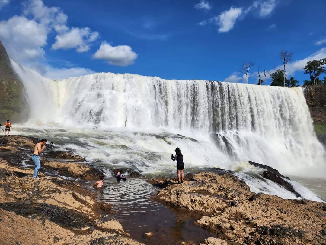 จากนั้น ออกเดินทางต่อ ชมน้ำตกตาดเยือง สายน้ำจากภูเขาเทวดา ใสสะอาด ตกจากหน้าผาสูงชัน ลดหลั่นประดับด้วยกล้วยไม้ป่า