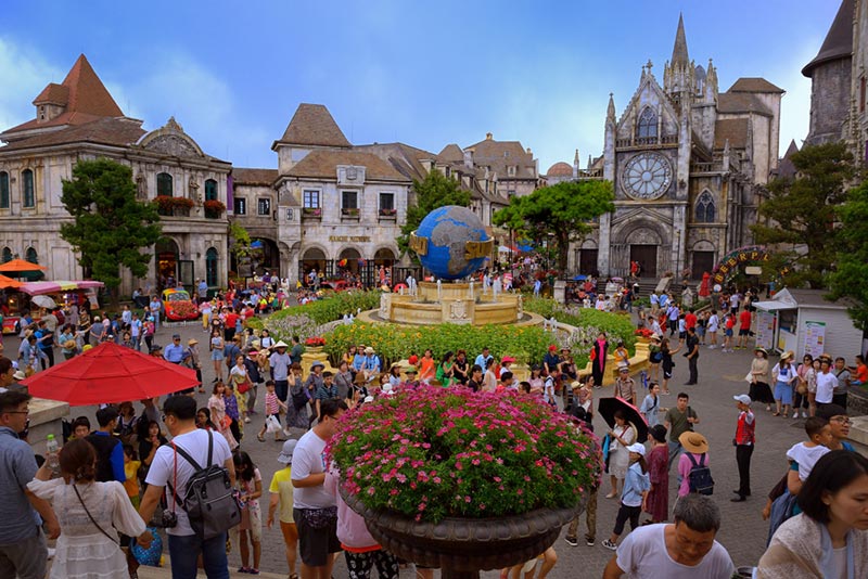 จากนั้น ท่านเดินทาง สู่ เมืองตากอากาศขึ้นชื่อแห่งดานัง ภูเขาบานาฮิลล์ ซึ่งห่างจากเมืองดานังออกไปประมาณ 40 กิโลเมตร ใช้เวลาในการเดินทาง 40-50 นาที บานาฮิลล์เป็นแหล่งท่องเที่ยวตากอากาศมาตั้งแต่สมัยสงครามโลกครั้งที่ 1 โดยได้เกิดแนวคิดการสร้างบ้านพักและโรงแรมจากชาวฝรั่งเศส ในสมัยอาณานิคมตั้งแต่ปี 1919 หลังจากจบสงครามฝรั่งเศสได้พ่ายแพ้และเดินทางออกจากเวียดนามเพื่อกลับประเทศ ทำให้บานาฮิลล์ถูกทิ้งร้างมาเป็นเวลานาน ปัจจุบันรัฐบาลเวียดนามได้กลับมาบูรณะเป็นเมืองท่องเที่ยวตากอากาศแห่งนี้อีกครั้งในปี 2009 พร้อมกับได้มีการสร้างหมู่บ้านฝรั่งเศส และกระเช้าลอยฟ้า ที่มีความสูงถึง 5,801จากระดับน้ำทะเลเพื่อใช้เป็นเส้นทางสำหรับขึ้นไปยังยอดเขา