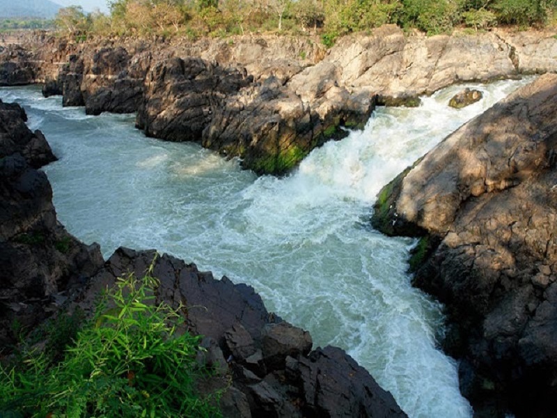 จากนั้น ออกเดินทาง สู่ ทางตอนใต้สุดเกือบถึงชายแดนเขมร ตามเส้นทางหมายเลข 13 ระยะทางประมาณ 148 กิโลเมตร ถึงท่าเรือบ้านนากาสัง นั่งเรือล่องแม่น้ำโขงลัดเลาะเกาะแก่งกลาง มหานทีสีทันดร ชมทิวทัศน์ริมฝั่งสวยงามจับใจ ขึ้นฝั่งที่เกาะ ดอนเดช ต่อด้วยการนั่งรถห้าแถวไปตามเส้นทางรถไฟเก่าผ่านเกาะดอนคอน สู่ น้ำตกหลี่ผี หรือ น้ำตกสำพะมิตร ที่เกิดจากน้ำที่ไหลถาโถมผ่านเกาะเนินหินซึ่งเป็นโขดหิน เป็นสายน้ำที่ไหลมารวมตัวกันพุ่งกระโจนลงตามซอกหิน ไหลลงสู่ โตเลสาบ ของประเทศเขมร ในอดีตมีเครื่องดักจับปลาของชาวบ้าน ที่เรียกว่า หลี่ ในสมัยสงครามเมื่อชาวบ้านมาทำหลี่ดักปลาไว้พอตอนเช้ามามาเก็บปลาก็พบเจอแต่ซากศพของทหารฝรั่งเศส จึงเป็นที่มาของคำว่า “หลี่ผี" ณ ปัจจุบันมีสิ่งปลูกสร้าง รถไฟไอน้ำ พระธาตุ พระยาคูขี้หอม เก็บภาพแห่งความระทึกใจ