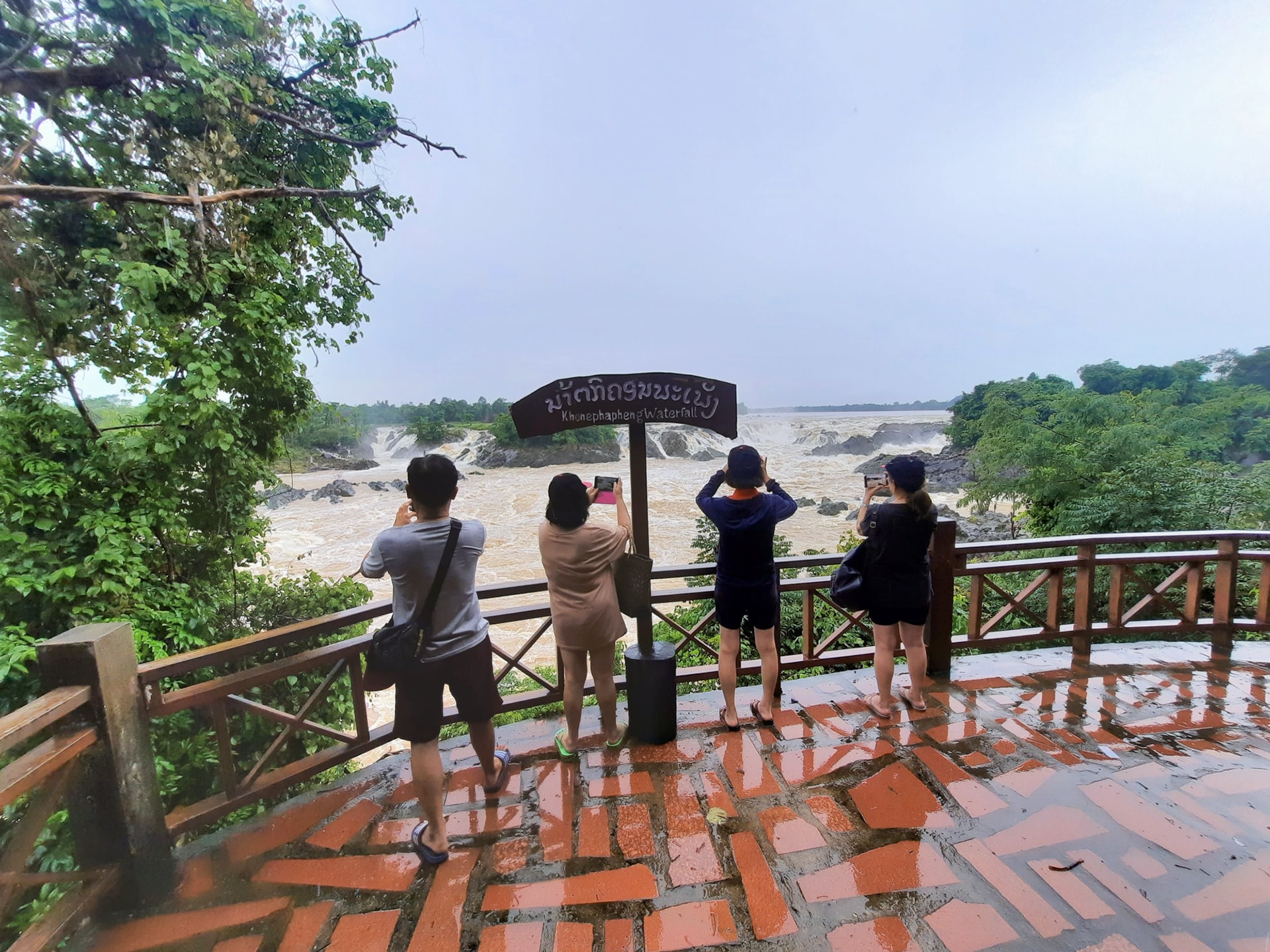 08.00น. ออกเดินทางสู่ทางตอนใต้สุดเกือบถึงชายแดนเขมร ถึง น้ำตกคอนพระเพ็ง จอดรถให้คณะชม ต้นไม้มณีโคตร ที่ชาวลาวเชื่อถือกันว่าเป็นต้นไม้ศักดิ์สิทธิ์ที่เกิดบนก้อนหินอยู่ใจกลางน้ำตกคอนพระเพ็ง