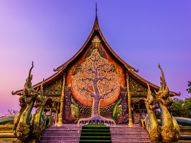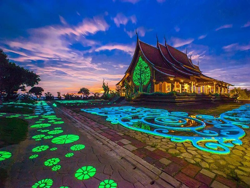 จากนั้น ออกเดินทางต่อ แวะชมความงดงามตระการตาอย่างน่าอัศจรรย์ ที่ วัดสิรินธรวราราม (ภูพร้าว) Unseen Thailand "ศิลปกรรมต้นไม้เรืองแสง" คือภาพเรืองแสงของประติมากรรมต้นกัลปพฤกษ์ที่ติดอยู่ผนังหลังโบสถ์ หรือต้นไม้สารพัดนึก อยู่ด้านหลังอุโบสถของวัด ความมหัศจรรย์ของภาพต้นไม้ที่ค่อยๆ เปล่งแสงสว่างขึ้นสวนทางกับท้องฟ้าที่ค่อยๆ มืดลงยามพลบค่ำ มันเป็นภาพที่ประทับใจจนต้องนำมาบอกต่อ ตัวภาพต้นไม้จะคล้ายกับที่เคยเห็นในวัดเชียงทองที่หลวงพระบาง เก็บภาพแห่งความทรงจำ