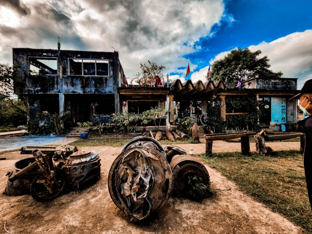 ... ต่อด้วยการนั่งรถห้าแถวไปตามเส้นทางรถไฟเก่าผ่านเกาะดอนคอน สู่ น้ำตกหลี่ผี หรือ น้ำตกสำพะมิตร ที่เกิดจากน้ำที่ไหลถาโถมผ่านเกาะเนินหินซึ่งเป็นโขดหิน เป็นสายน้ำที่ไหลมารวมตัวกันพุ่งกระโจนลงตามซอกหิน ไหลลงสู่ โตเลสาบ ของประเทศเขมร ในอดีตมีเครื่องดักจับปลาของชาวบ้าน ที่เรียกว่า หลี่ ในสมัยสงครามเมื่อชาวบ้านมาทำหลี่ดักปลาไว้พอตอนเช้ามามาเก็บปลาก็พบเจอแต่ซากศพของทหารฝรั่งเศส จึงเป็นที่มาของคำว่า “หลี่ผี" ณ ปัจจุบันมีสิ่งปลูกสร้าง รถไฟไอน้ำ พระธาตุ พระยาคูขี้หอม เก็บภาพแห่งความระทึกใจ