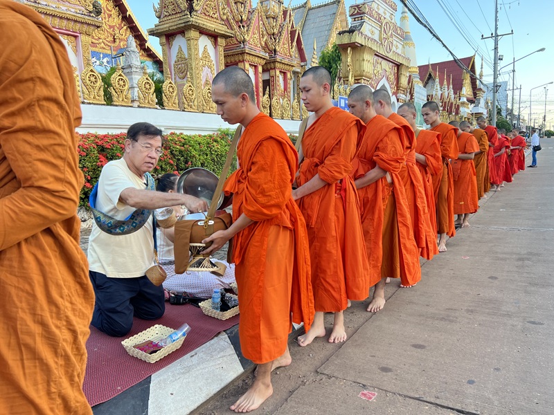 ใส่บาตรข้าวเหนียวพระสงฆ์กว่า 50 รูป หน้าวัดหลวง