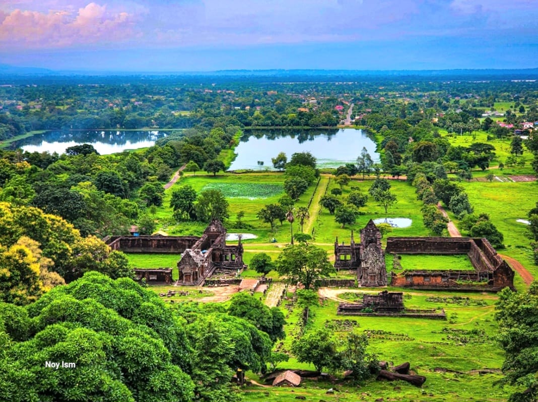 จากนั้น ออกเดินทาง สู่ เมืองจำปาสัก อดีตนครหลวงลาวใต้ เพื่อไปชมมรดกโลก ปราสาทหินวัดพู จุดเริ่มต้นของอาณาจักรขอมโบราณ เป็นปราสาทขอมแห่งแรกลักษณะของปราสาทเป็นเทวสถานขอม คล้ายกับเขาพระวิหาร มีอารยะธรรมโบราณถึง 3 สมัยด้วยกัน คือ อาณาจักรเจนละในช่วงศตวรรษที่ 6-8 อาณาจักรขอมสมัยก่อนเมืองพระนคร และสุดท้ายอาณาจักรล้านช้าง ซึ่งต่อมาก็คือประเทศลาวในปัจจุบัน ทำเลที่ตั้งสวยงามมาก ชาวลาวเรียกว่า “ภูเก้า” เก็บภาพแห่งความภาคภูมิใจ