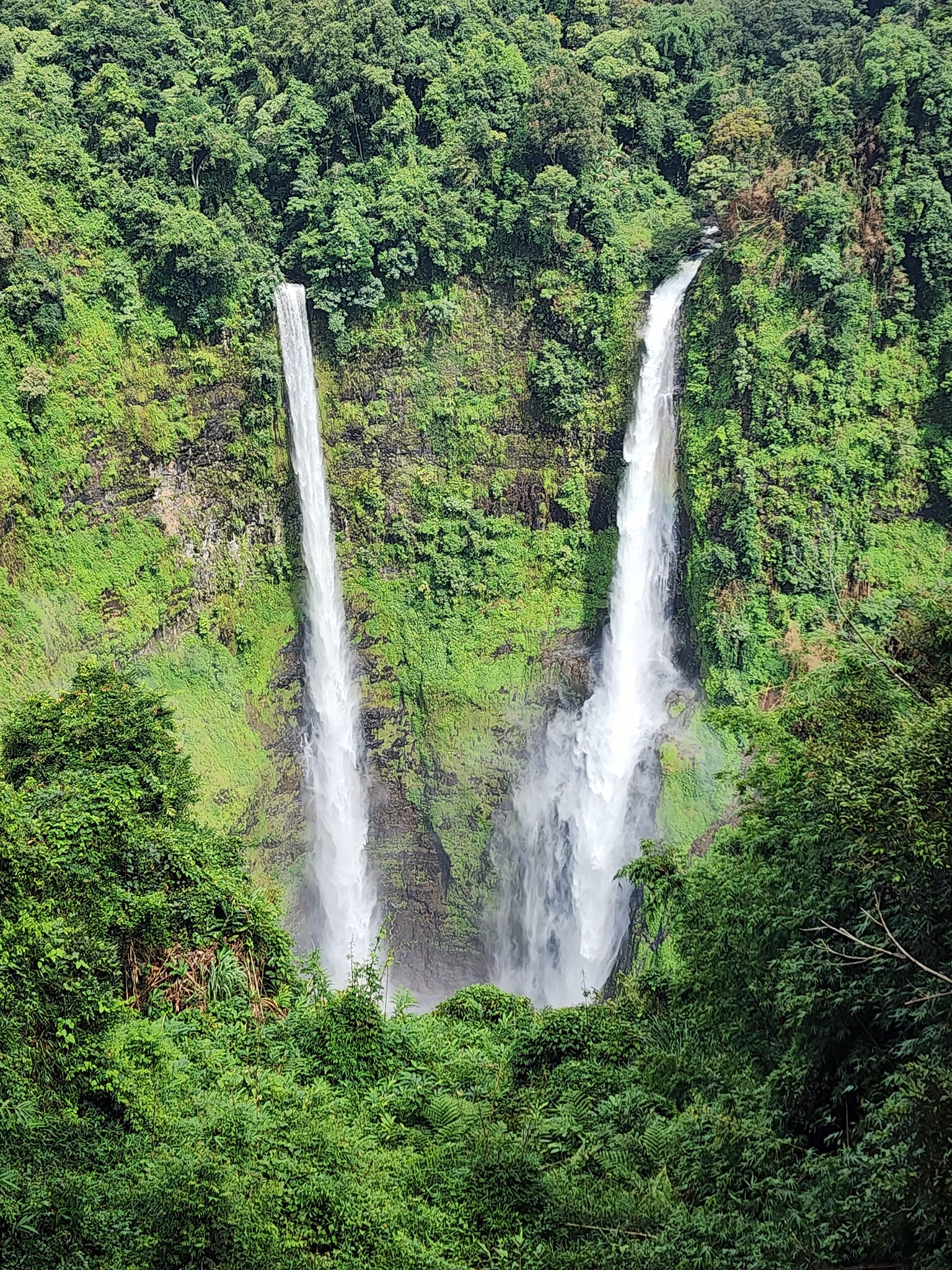 ต่อด้วย    ชมน้ำตกคู่แฝด น้ำตกตาดฟาน เป็นน้ำตกที่สูงที่สุดในแขวงจำปาสัก  เรียกอีกชื่อว่า  น้ำตกดงหัวสาว จุดเดินชมอยู่ตรงสายน้ำ2สาย ที่ไหลลงจากหน้าผาสูง โดยสายน้ำทางซ้ายมือไหลมาจากห้วยผักกูด และทางขวามือเป็น สายน้ำที่ไหลมาจากเขตอุทยานแห่งชาติดงหัวสาว  มีจุดชมวิวที่ตั้งอยู่คนละฟากเขากับตัวน้ำตกในระดับความสูงเท่าๆกัน  จากตรงนี้สามารถชมวิวตัวน้ำตกในมุมสูง ได้อย่าง ชัดเจน  เก็บภาพแห่งความประทับใจ