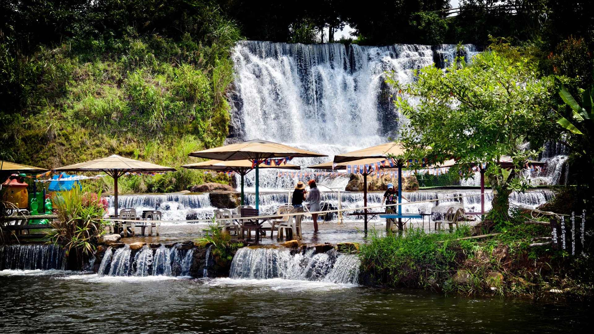 จากนั้น ออกเดินทางต่อ ชมน้ำตกตาดเยือง สายน้ำจากภูเขาเทวดา ใสสะอาด ตกจากหน้าผาสูงชัน ลดหลั่นประดับด้วยกล้วยไม้ป่า