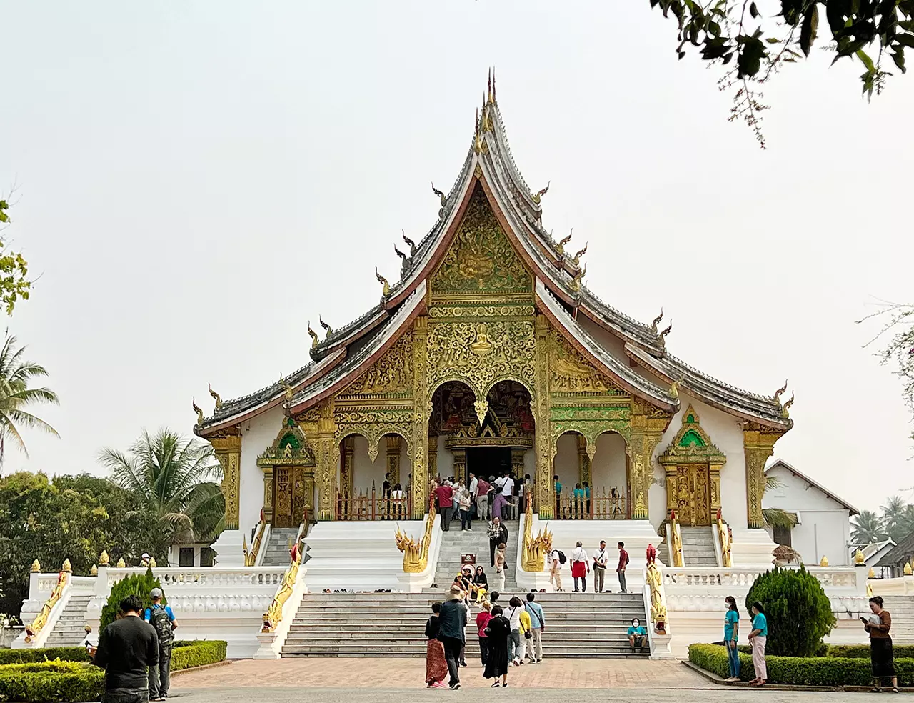 จากนั้น ชมพระราชวังหลวง ขึ้นในปีพ.ศ. 2477 เพื่อเป็นที่ ประทับของเจ้ามหาชีวิตศรีสว่างวงศ์ ออกแบบโดยสถาปนิกชาวฝรั่งเศส สร้างฐานซ้อนกันหลายชั้น หลังคามุงกระเบื้อง นับเป็นการผสมผสานความงดงามของตัวอาคารแบบฝรั่งเศสกับศิลปะแบบล้านช้างในตัว พระราชวังได้อย่างลงตัว ต่อด้วย ชมหอพระบาง ภายในเป็นสถานที่ประดิษฐานพระบาง พระพุทธรูปคู่บ้านคู่เมืองของหลวงพระบางและยังเป็นที่มาของชื่อเมืองหลวงพระบาง โดยพระบางหล่อขึ้นด้วยทองคำบริสุทธิ์เกือบทั้งองค์ ส่วนฝั่งตรงข้ามกับหอพระบางเป็นที่ตั้งของอนุสาวรีเจ้ามหาชีวิตศรีสว่างวงศ์ ผู้พระราชทานรัฐธรรมนูญแก่ปวงชนชาวลาว เก็บภาพแห่งความประทับใจ