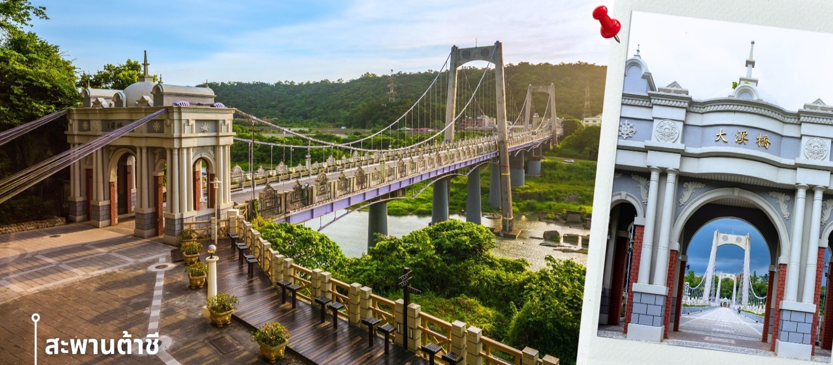 จากนั้น พาท่านแวะชม สะพานต้าซี เป็นสะพานแขวนในเมืองเถาหยวน ประเทศไต้หวันมีการออกแบบซุ้มประตูสะพานด้วยศิลปกรรมแบบบารอกเพื่อให้เข้ากับอาคารที่ถนนโบราณต้าซีเชื่อมต่vระหว่าง
